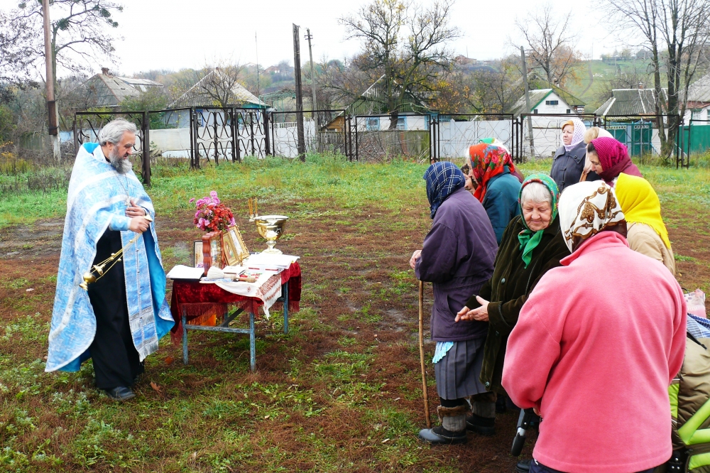 Поэтому водосвятный молебен с чтением акафиста Пресвятой Богородицы в честь иконы ее именуемой Казанская о. Сергий с прихожанами провел на улице вблизи того места, где некогда находился храм Рождества Пресвятой Богородицы села Константиновка (сегодня Константовка).