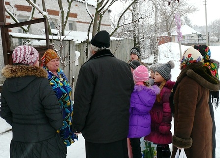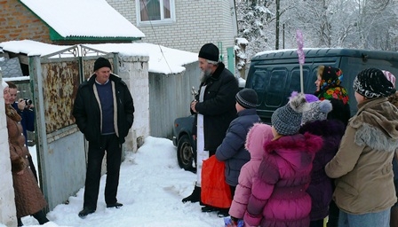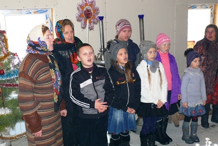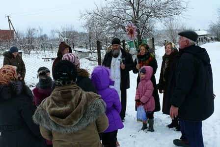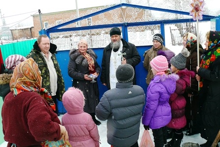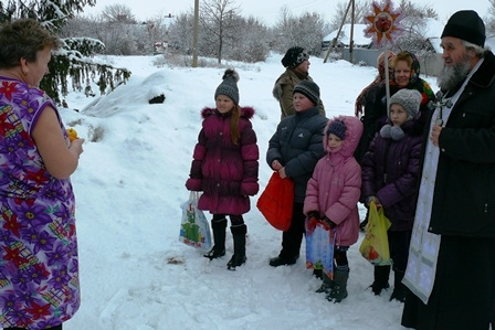 После молебна дети во главе отцом Сергием и матушкой Ириной, с Крестом и Вифлиемской звездой, посетили многих сельчан приветствуя их Рождественскими колядками, извещая о рождении Спаса нашего Иисуса Христа.