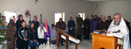 В нашем храме мы еще не можем служить Божественную Литургию. Однако 8 января о. Сергий служил водосвятный молебен с чтением акафиста Рождеству Христову. Отрадно, что на молебне присутствовали дети местной школы.