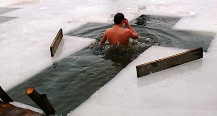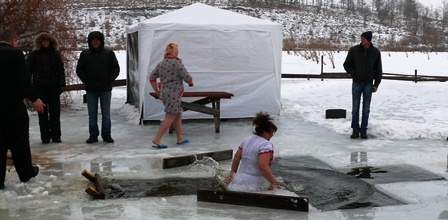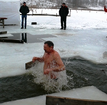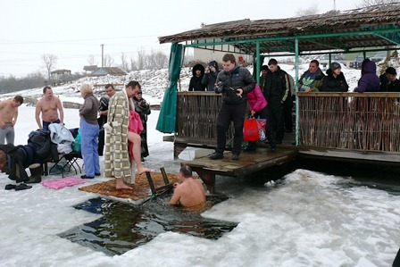 После чего многие, мужчины и женщины, пожелали окунуться в приготовленные крестообразные проруби: