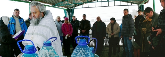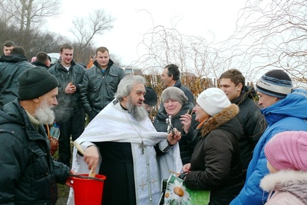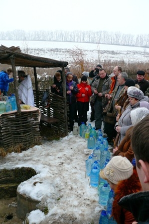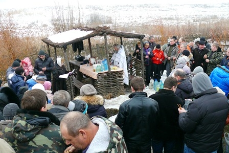 В нашем селе сельчане также радостно отмечали это событие. Священник о. Сергий отслужил молебен Великого освящения воды на источнике: