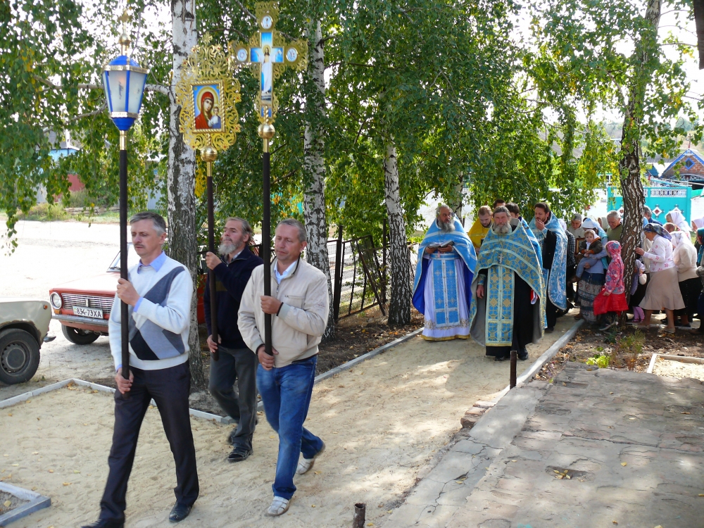 21 сентября в нашем храме в день престольного праздника было совершено праздничное богослужение: водосвятный молебен, божественная литургия, крестный ход и освящение креста и купола на колокольню.