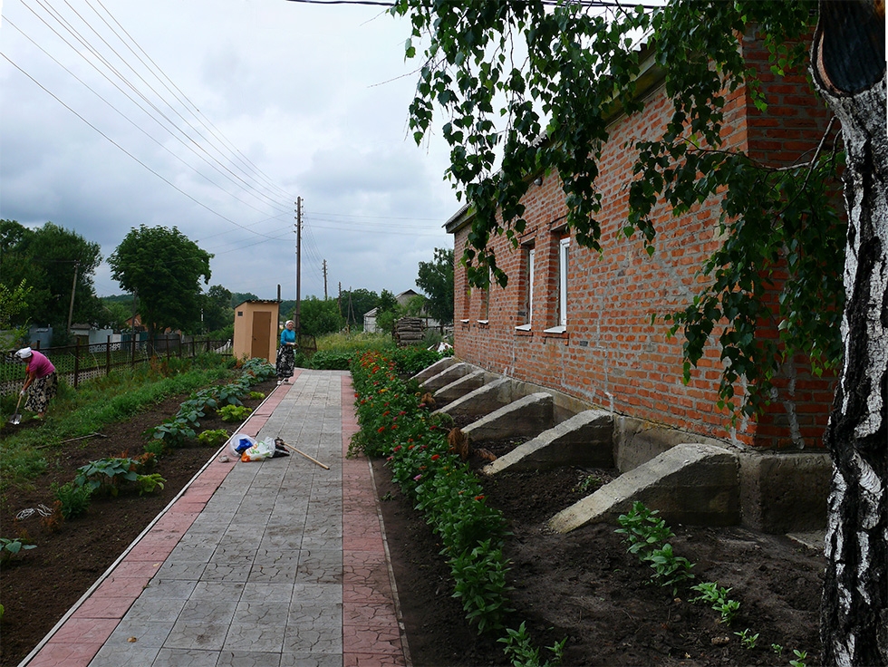Стараниями матушки Ирины и ее помощниц Татьяны и Наталии территория вокруг храма необычайно красиво расцвела.
